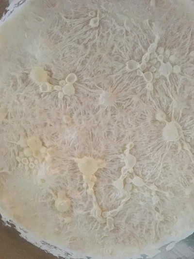 Kahmgjær på syrnet melk (kefir) som har stått litt lenge.