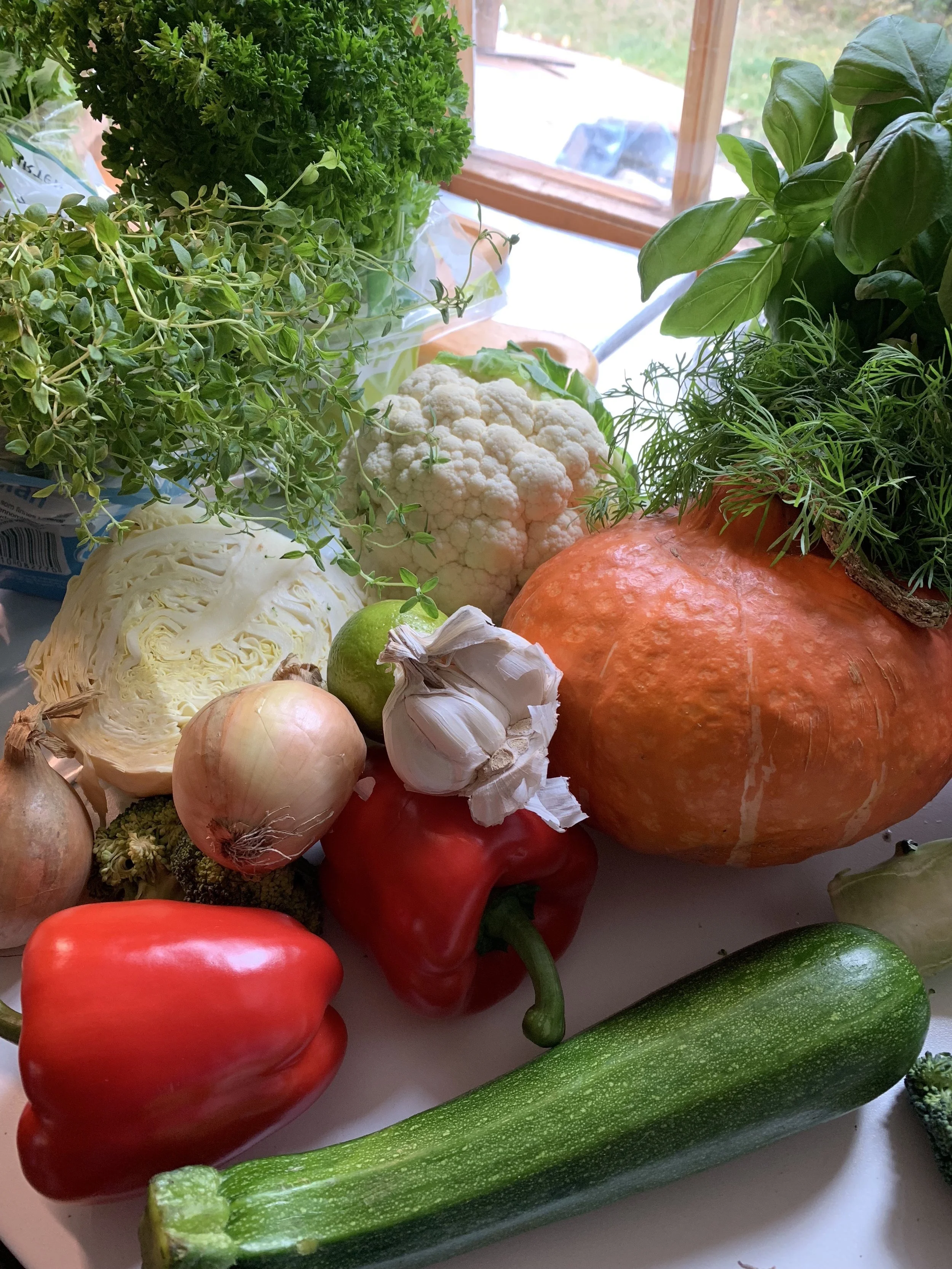Fermentering er en god løsning. Her er urter og grønnsaker jeg brukte til en fermentert “torshi”, en iransk grønnsakblanding.