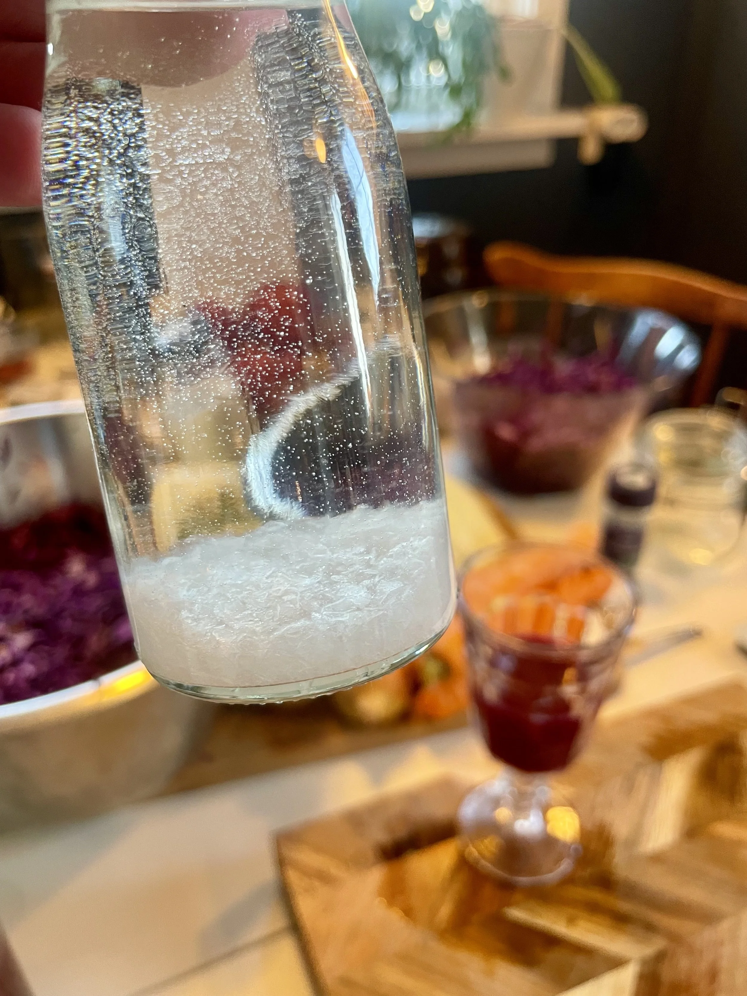 Salt. Mange er redd for dette med salt, og jeg har fått mange henvendelser angående salt og fermentering. “Kan det være bra med så mye salt”? Jeg selv spiser fermentert surkål og kimchi daglig - riktignok i moderate mengder. Jeg drikker ofte rødbetkvass, fermentert sitronsaft og kåljuice - pluss at jeg spiser andre fermenterte ting som kefir, og yoghurt. Allikevel har jeg opplevd at blodprøve viste at jeg var for lav på sodium (salt) i kroppen, selv med alt det fermenterte jeg spiser! Ingen stor gåte egentlig, for saken er at jeg holder meg unna ultraprosessert mat. Det er nemlig der det pøses på med mengder av billig salt - i kombinasjon med sukker/søtstoffer som øker insulinnivået, fett, fargestoffer, konsistensmidler og andre tvilsomme greier. Dette er ikke mat, og spiser man mye ultraprosessert, kan det oppstå næringsmangler i tillegg til høyt inntak av natrium - den delen av saltet som advarslene sier kan føre til alvorlige helseproblemer (farene ved høyt insulinnivå er mindre i fokus).